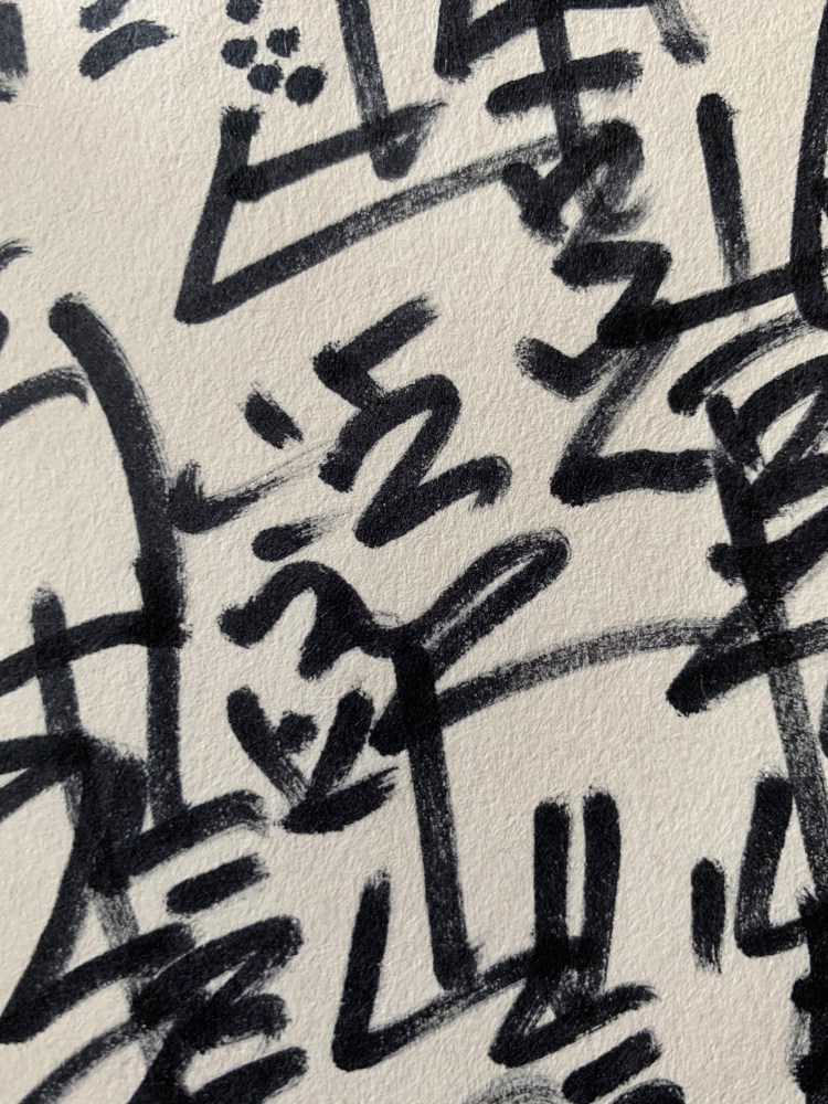 Much of the work here is ephemeral, e.g., brushwork is photographed while ink is still wet, paper is swept away, photo moment is gone...
